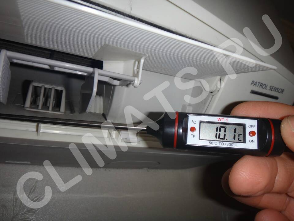- Вентилятор внутреннего блока продувает воздух через теплообменник