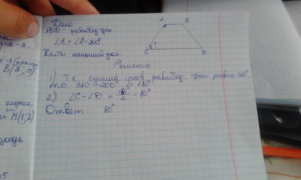 Если известен один из углов равнобедренной трапеции, остальные можно найти по следующим правилам: