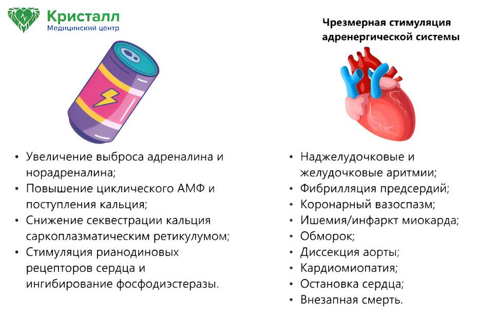 Потребление более 400 мг кофеина за короткий период считается опасным. Три энергетика могут приблизиться или превысить этот лимит. При признаках передозировки (сильная аритмия, рвота, спутанность сознания) необходимо: