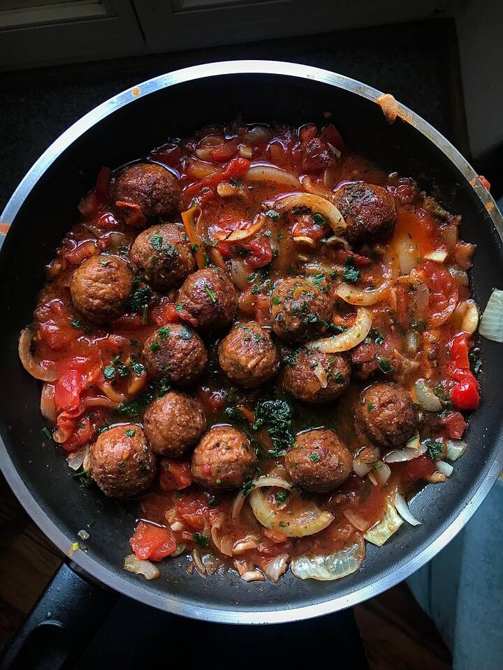 Традиционно фрикадельки подают с картофельным пюре или макаронами, поливая томатным соусом. Для аутентичности добавьте брусничный джем и свежий огурец.
