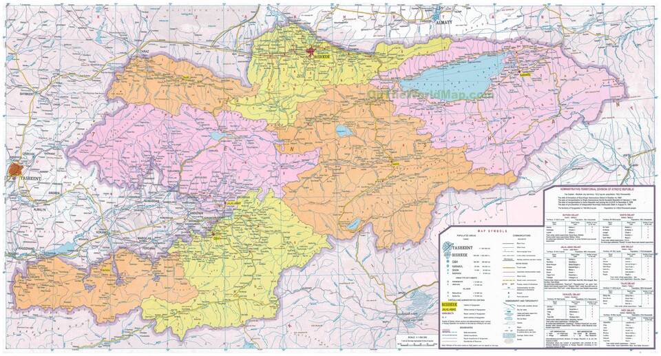 Военные и стратегические объекты на картах Киргизии могут быть специально искажены или отсутствовать согласно местному законодательству. Для профессионального использования карт требуется специальное разрешение.