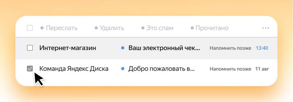 - Выделите нужные письма, удерживая клавишу Ctrl.