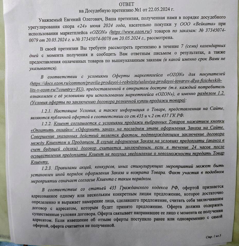 Сроки рассмотрения претензии