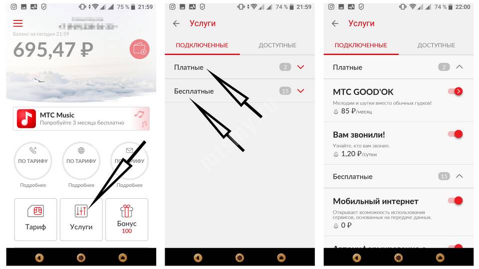 Мобильное приложение | "Мой МТС" → "Услуги" | Полная информация |
