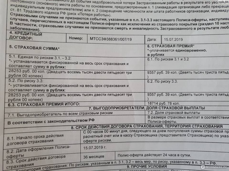 Условия возврата страховки