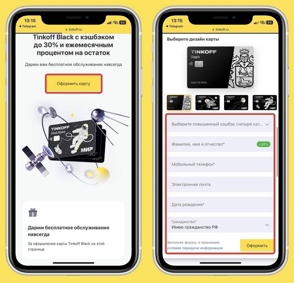 Тинькофф Банк предлагает несколько вариантов оформления карты: