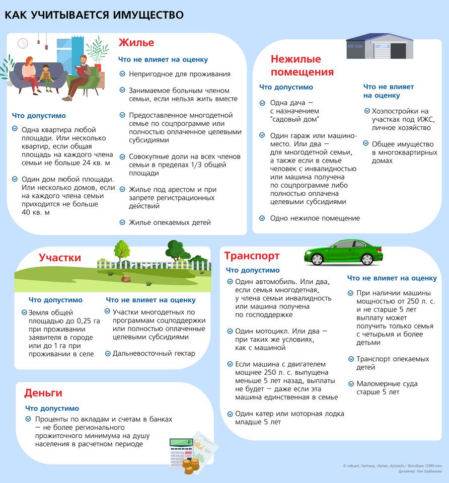 Социальные выплаты | Низкий доход или особый статус | Устанавливается региональными властями |